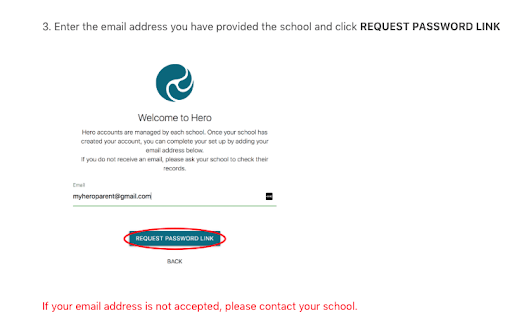 To login to your HERO account, open a browser in a laptop or desktop , enter your school email address and password